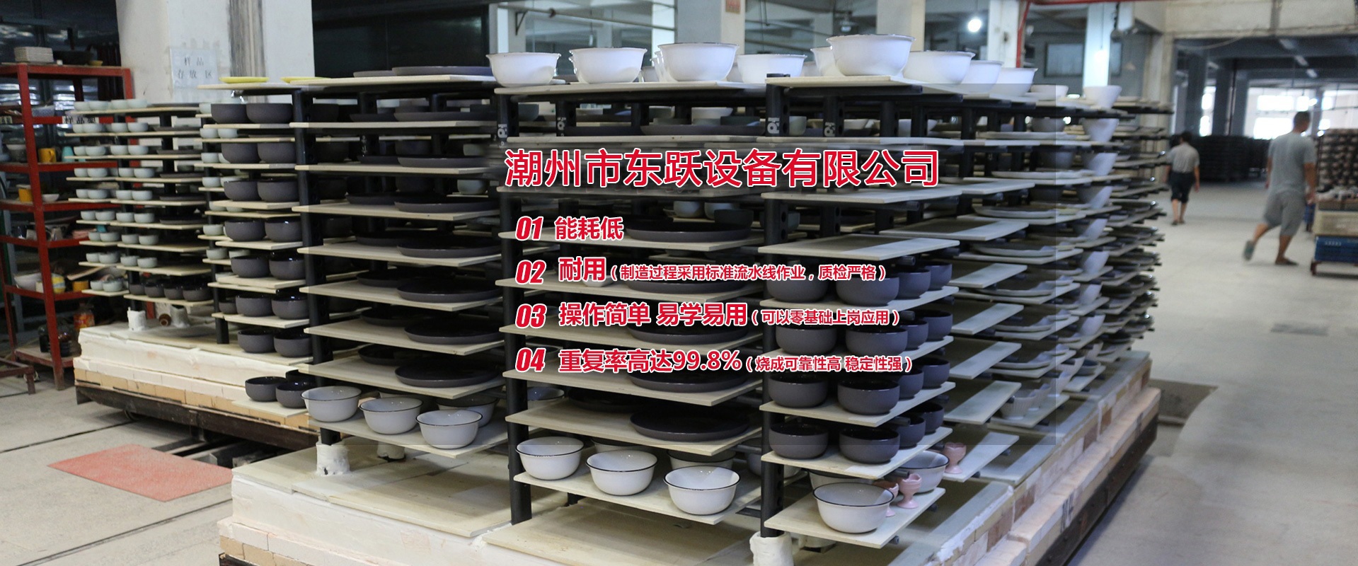 潮州市東躍設備有限公司,創(chuàng)立于公元2011年5月14日,經過進十年的努力,已發(fā)展成一家擁有集研發(fā)、設計、加工制造、安裝、調試與售后一體化的窯爐公司。設計理念:1.能耗低2.耐用(制造過程采用標準流水線作業(yè),質檢嚴格)3.操作簡單 易學易用(可以零基礎上崗應用)4.重復率高達99.8%(燒成可靠性高 穩(wěn)定性強)